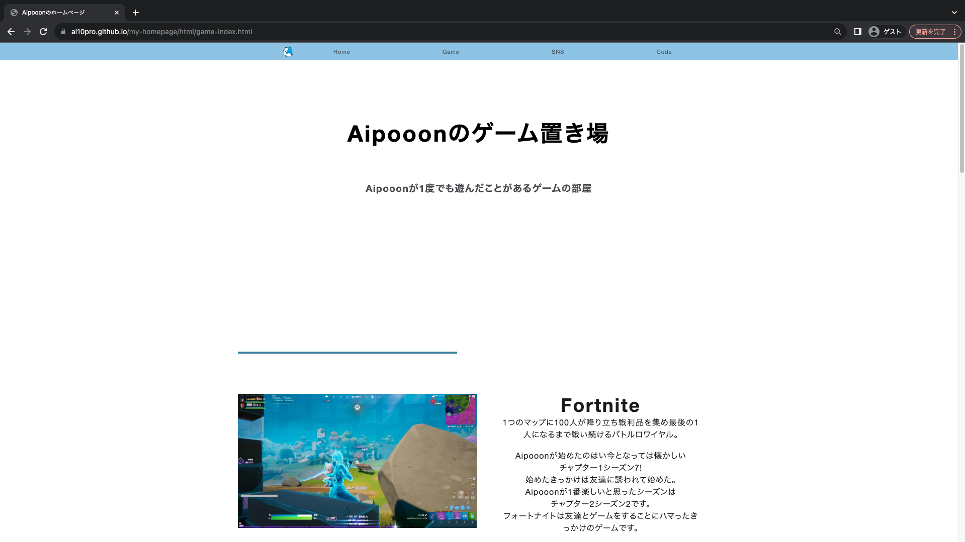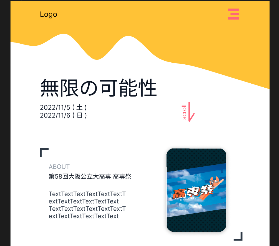高専祭特設サイトのデザインとコーディングを行いました。Webフレームワーク(React)を利用して作成しました。現在はサイト閉鎖のため見ることはできません。