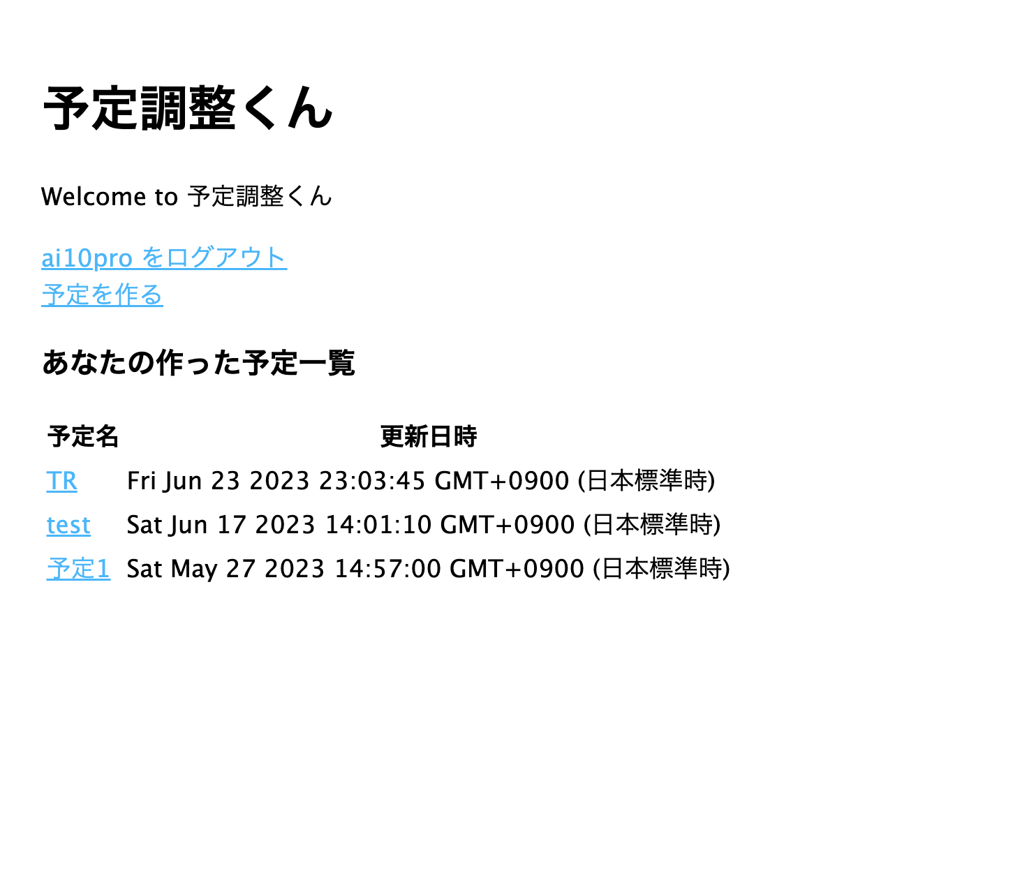 バックエンドの練習を兼ねて予定調節くんという、予定調節アプリを作成しました。GitHab認証を導入しており、予定の作成者、参加者などが管理できるようになっています。 Dockerを使ってAPIの開発を行いました。
